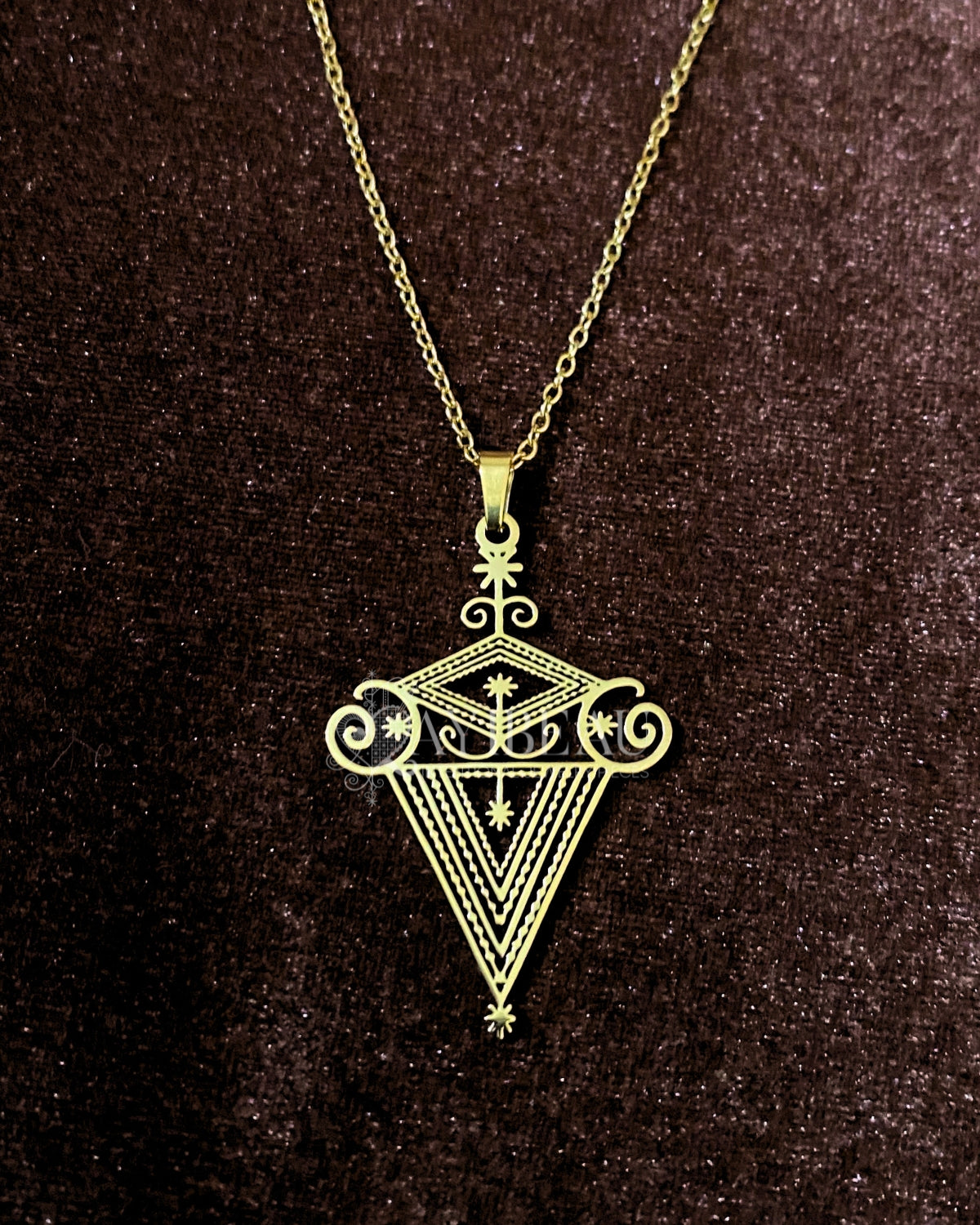 Discover La Sirène, the enchanting water spirit of the sea and all its secrets. This pendant, shaped like her vèvè, brings out the beauty, and wisdom of the ocean’s depths. La Sirène is the ultimate embodiment of transformation and the hidden knowledge that comes with flowing through life’s tides. Wear this piece to channel your inner mermaid, tap into the mysteries, and ride the waves of life with grace.